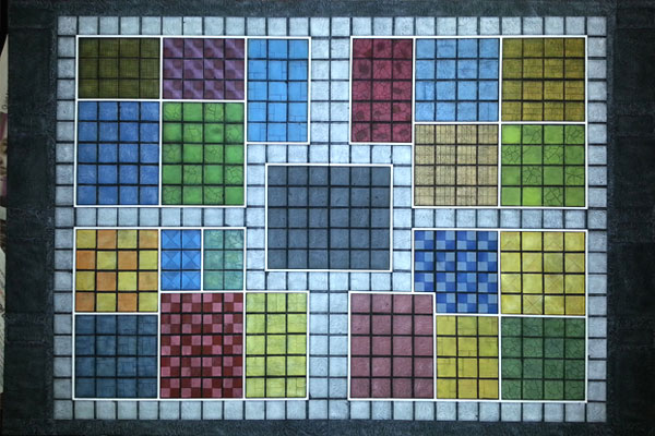 Which I then cut into 1" by 1" tiles. I cut them by hand with an xacto knife rather than using a cutting tool because I wanted to keep an imperfect feel to the board, as opposed to a whole board with every tile exactly square and identical. You have to figure most of the dungeons were built by lowly Orc and Goblin grunts, or maybe undead slaves, meaning they probably wouldn't be the best craftsmen!